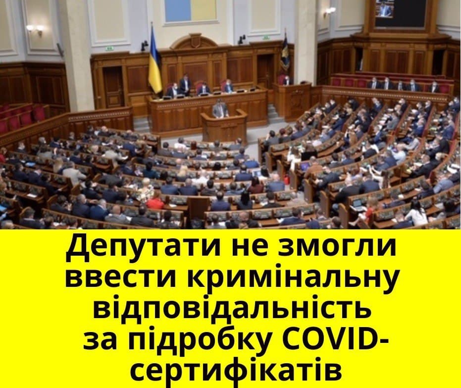 Народні депутати не змогли ухвалити урядовий законопроект щодо криміналізації підробки Covid-сертифікатів