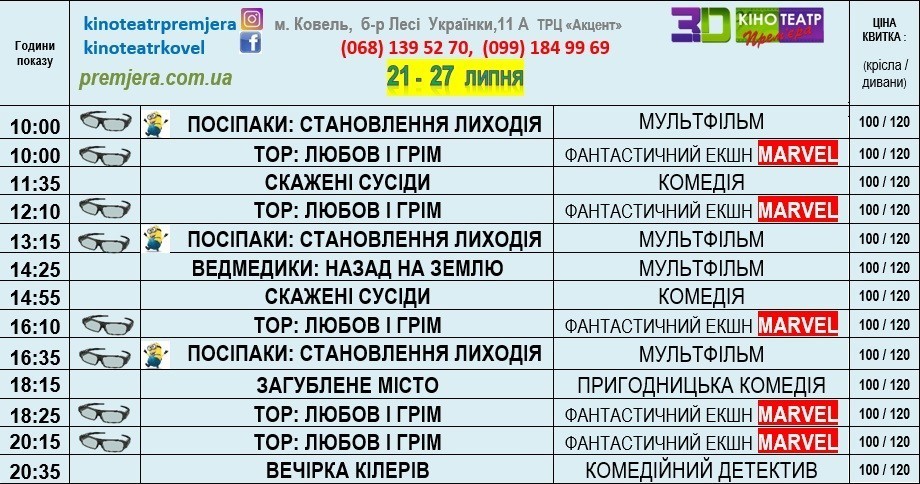Розклад фільмів у кінотеатрі «Прем’єра» на 21-27 липня 2022