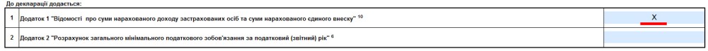 Далі ми проставляємо відмітку про заповнення додатка №1:
