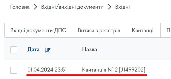 Після відправлення документа залишається пізніше перевірити у вхідних документах успішність отримання документа.