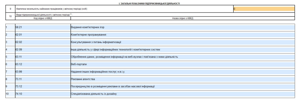 Далі заповнюємо коди згідно з КВЕД. Необхідно вказати всі КВЕДи згідно з якими ви отримували прибуток у 2 кварталі 2024 року. Якщо доходу у 2 кварталі не було, можна залишити лише 1 основний КВЕД.