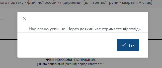 При успішному виконанні ви отримаєте повідомлення «Надіслано успішно. Через деякий час отримаєте відповідь».