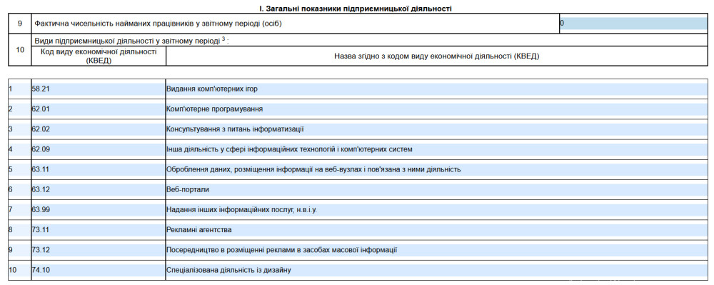 Переходимо до 9 рядка «Фактична чисельність найманих працівників у звітному періоді (осіб)». Якщо працівників немає — ставимо 0. ФОП сам для себе не є працівником.