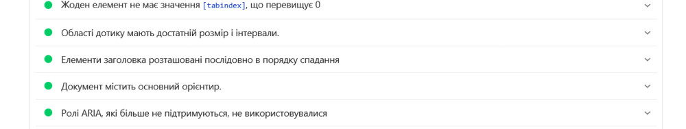 Додати тег <main> або role="main" довкола головної частини сайту. Використати правильну структуру з header, nav, main, footer.Результат