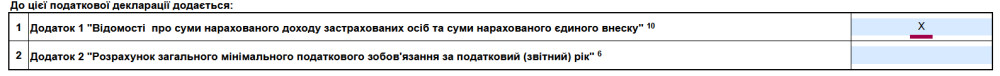 Далі ми проставляємо відмітку про заповнення додатка №1: