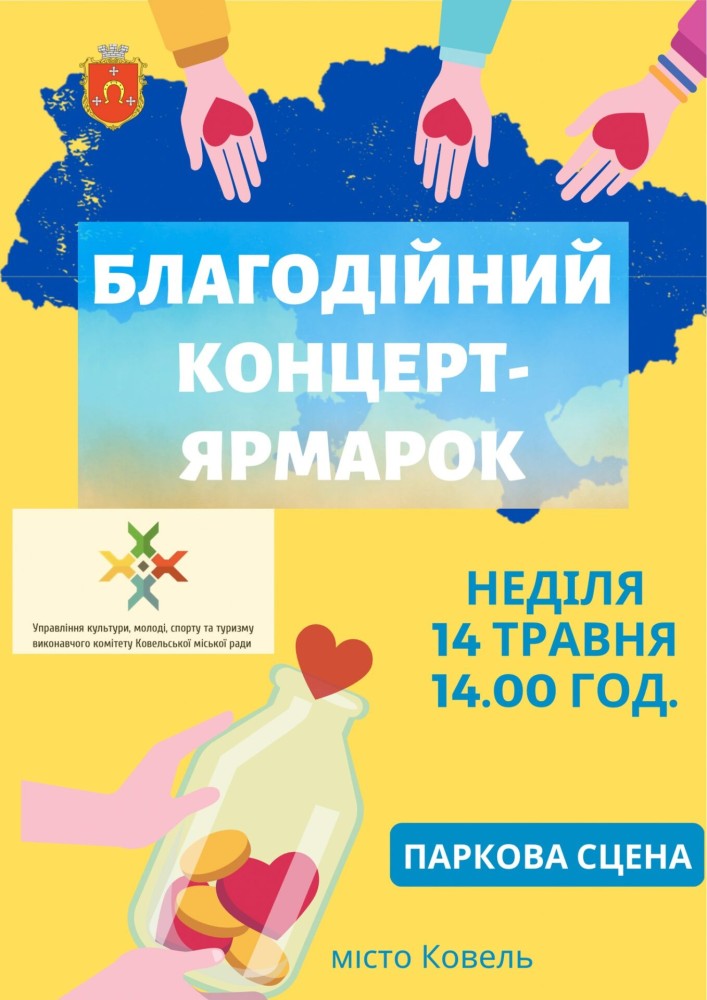 14 травня з 14.00 у Ковелі на парковій сцені відбудуться благодійні ярмарок та концерт. Інформує офіційний сайт Ковельської міської ради.