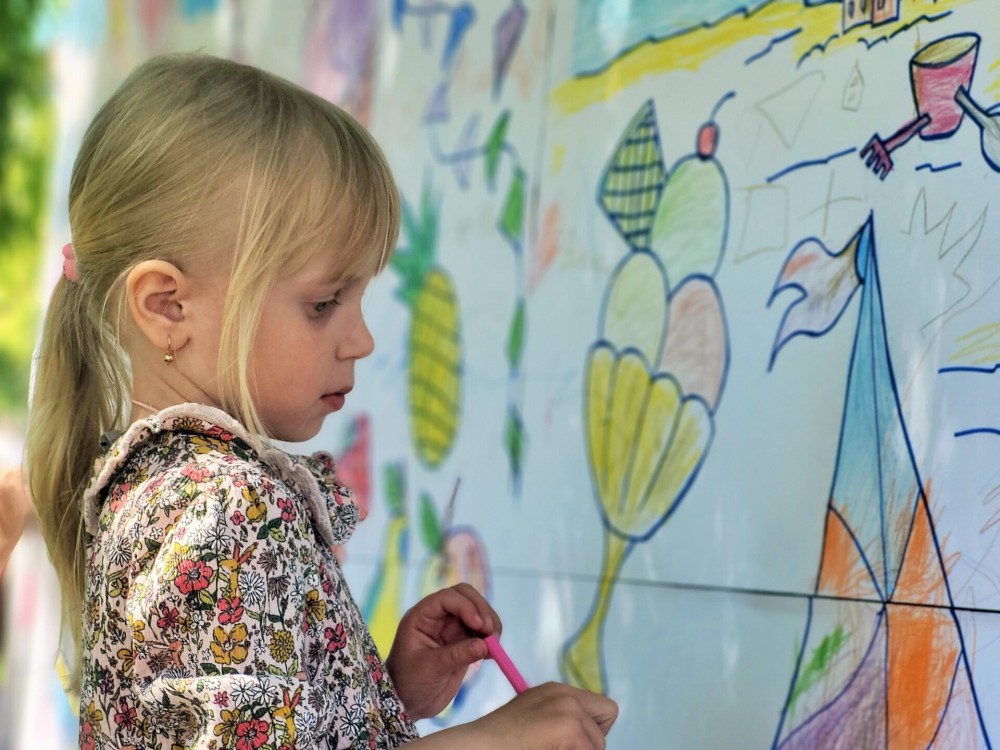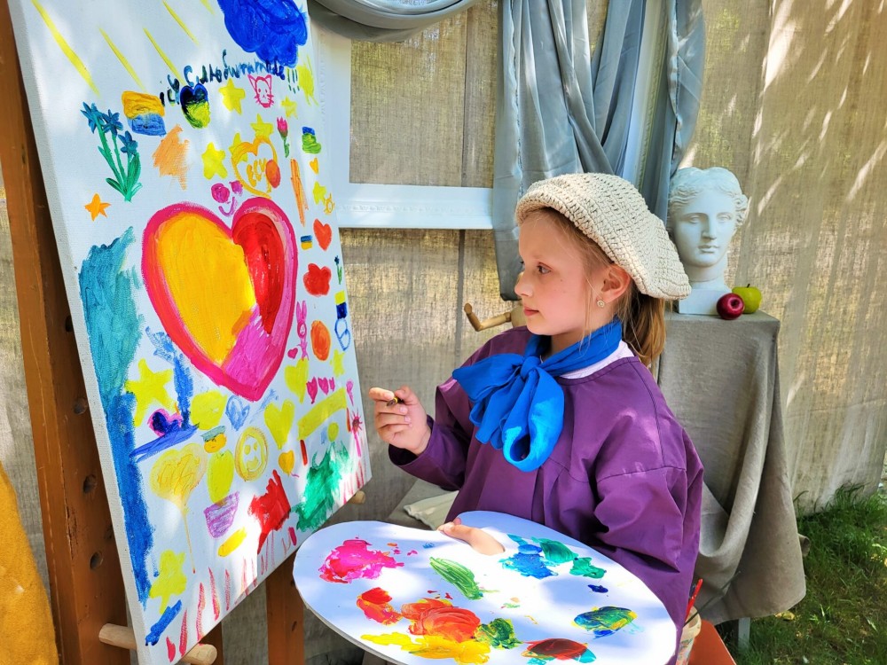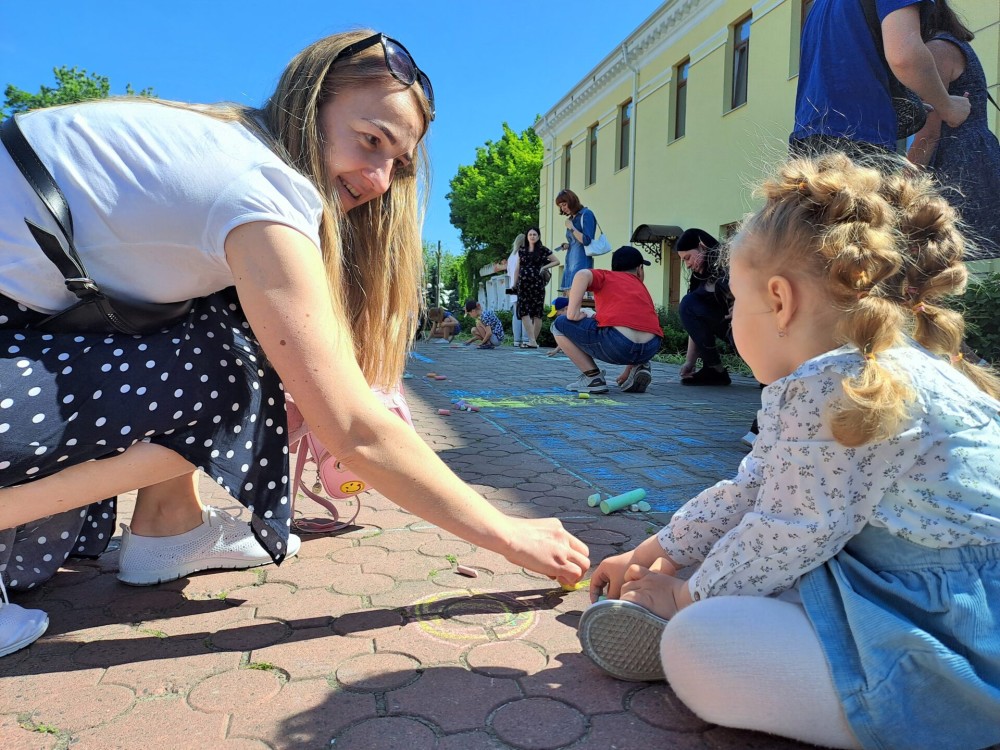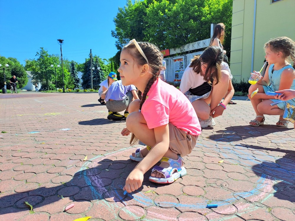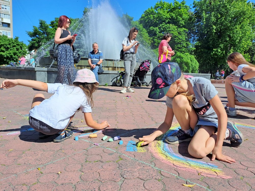 А зовсім поряд діти малювали своє радісне дитинство. На їх картинах воно — різнокольорове, сонячне, веселкове. Завдання дорослих – подарувати їм це безтурботне завтра, про яке вони мріють.
