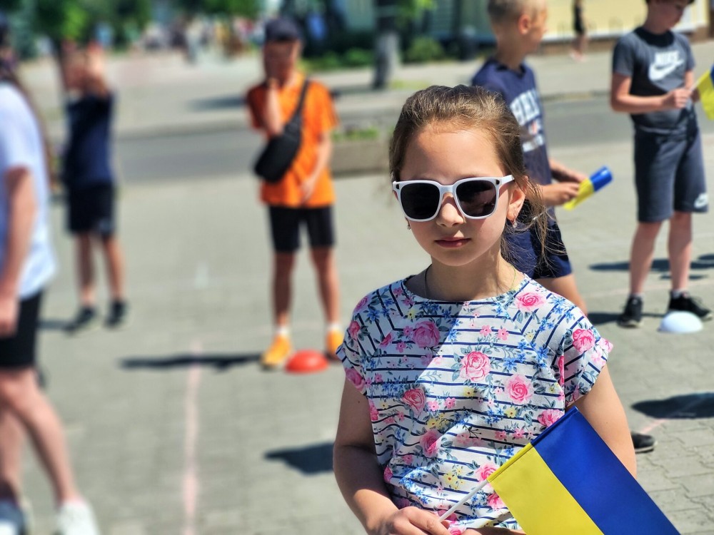 Опівдні понад п’ятдесят хлопчиків і дівчаток з жовто-блакитними прапорцями пробігли центральною вулицею міста.