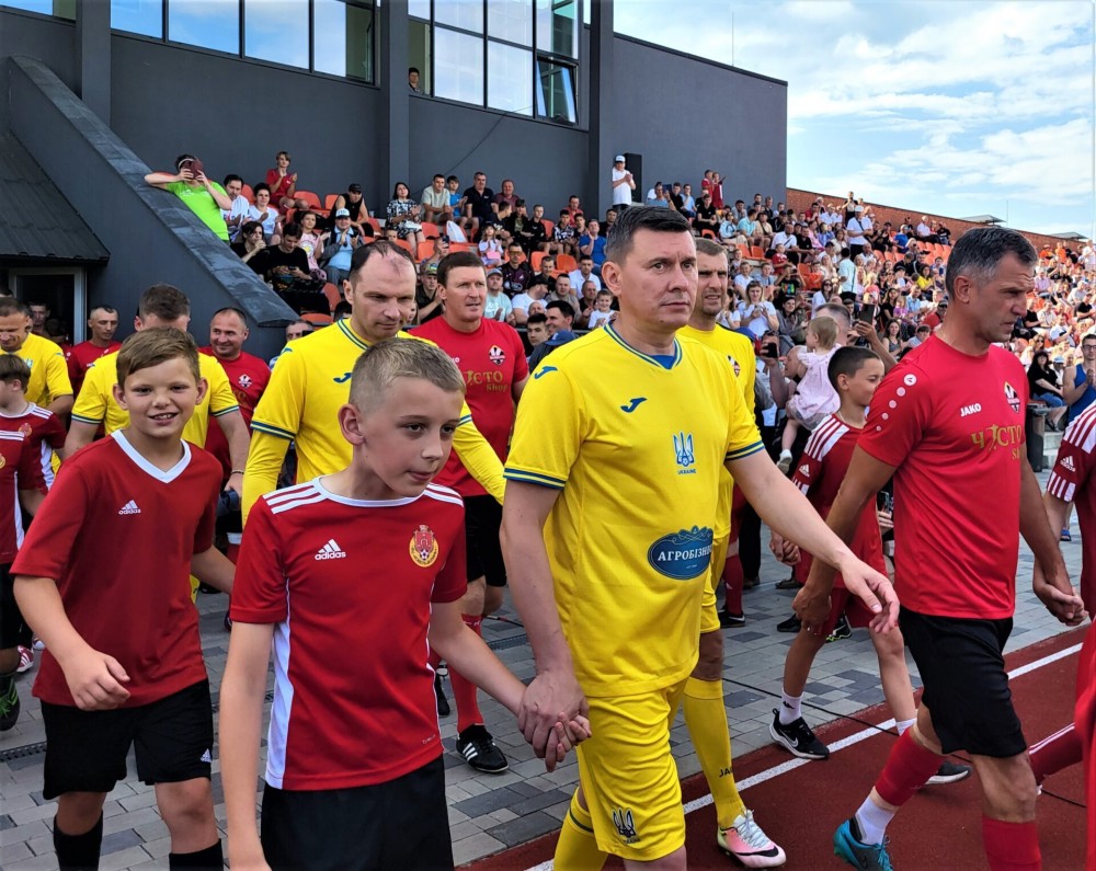 На поле вийшли легенди футболу нашого міста, Волині, України. Серед них – Олег Собуцький, Андрій Воробей, Артем Федецький, Євген Селезньов, Андрій Полунін, В’ячеслав Свідерський, Олег Герасим’юк.