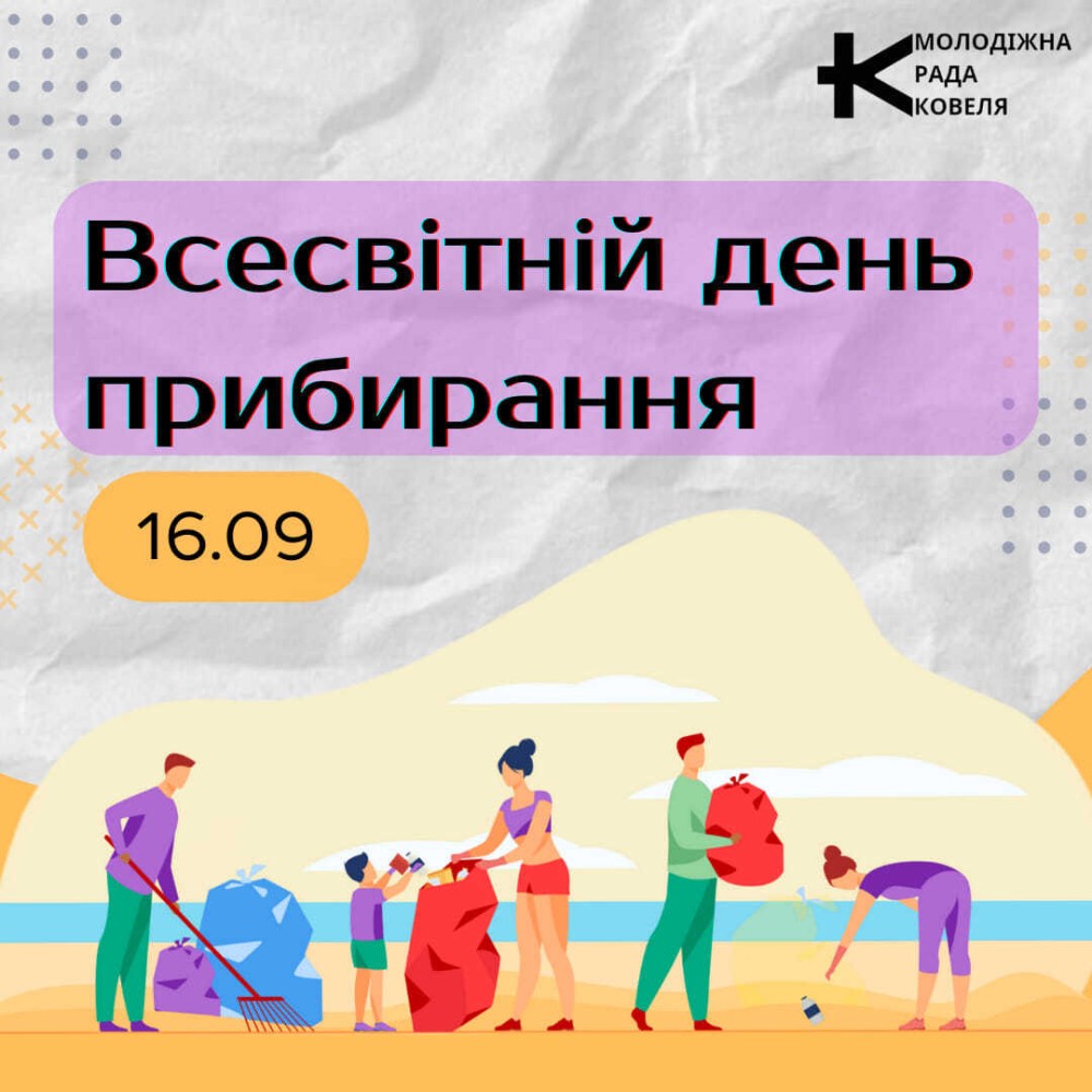 16 вересня — Всесвітній день прибирання. Молодіжна рада при Ковельському міському голові запрошує мешканців приєднатися та прибрати територію нашого міста.