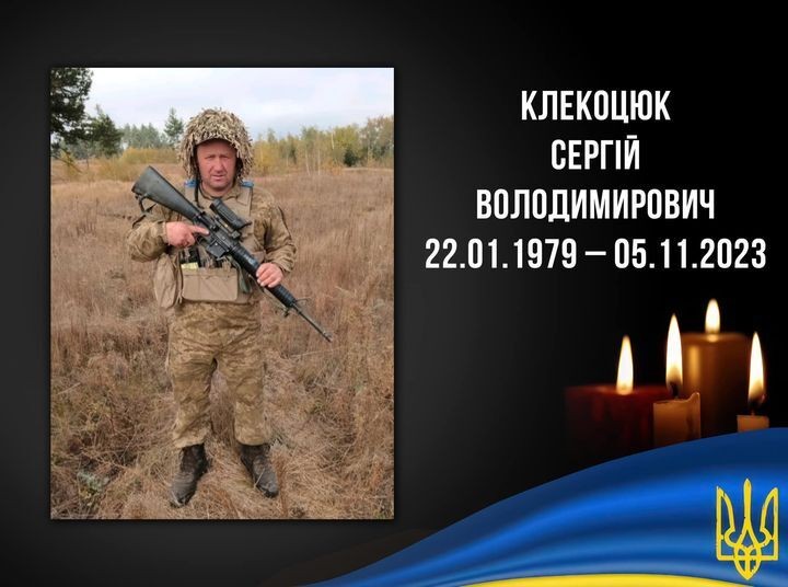 На війні з росією загинув житель села Заріччя КЛЕКОЦЮК СЕРГІЙ ВОЛОДИМИРОВИЧ (22.01.1979 – 05.11.2023). Про це повідомляє міський голова Ігор Чайка на своїй сторінці у Фейсбук.