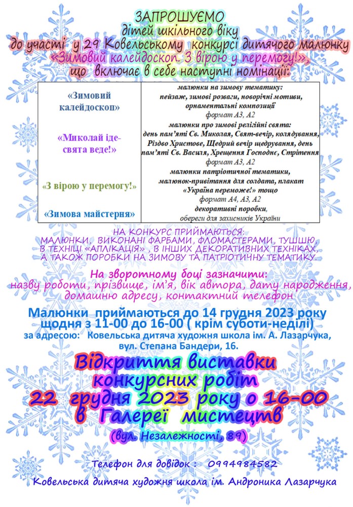 Юних художників Ковельської громади запрошують до участі у конкурсі “Зимовий калейдоскоп. З вірою у Перемогу!”