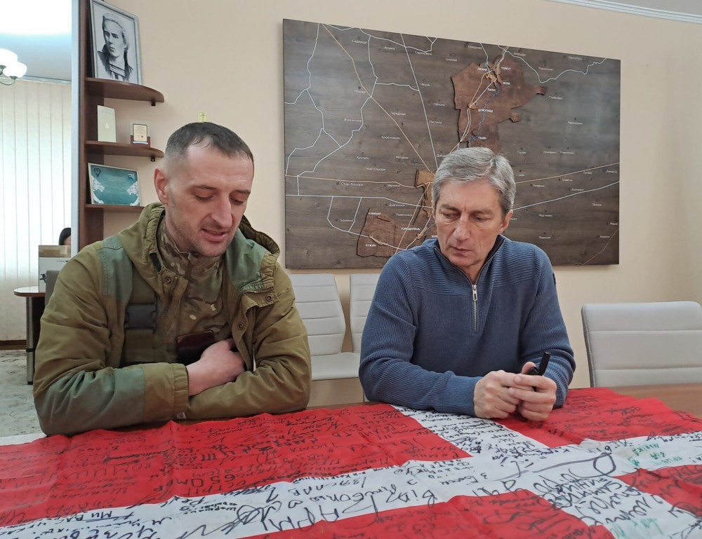Ігор Чайка подякував військовому та залишив побажання на полотнищі знамена Волинської області «Чекаємо з Перемогою». Це — символічний стяг, на якому уже є підписи тих, хто встиг допомогти підрозділу.