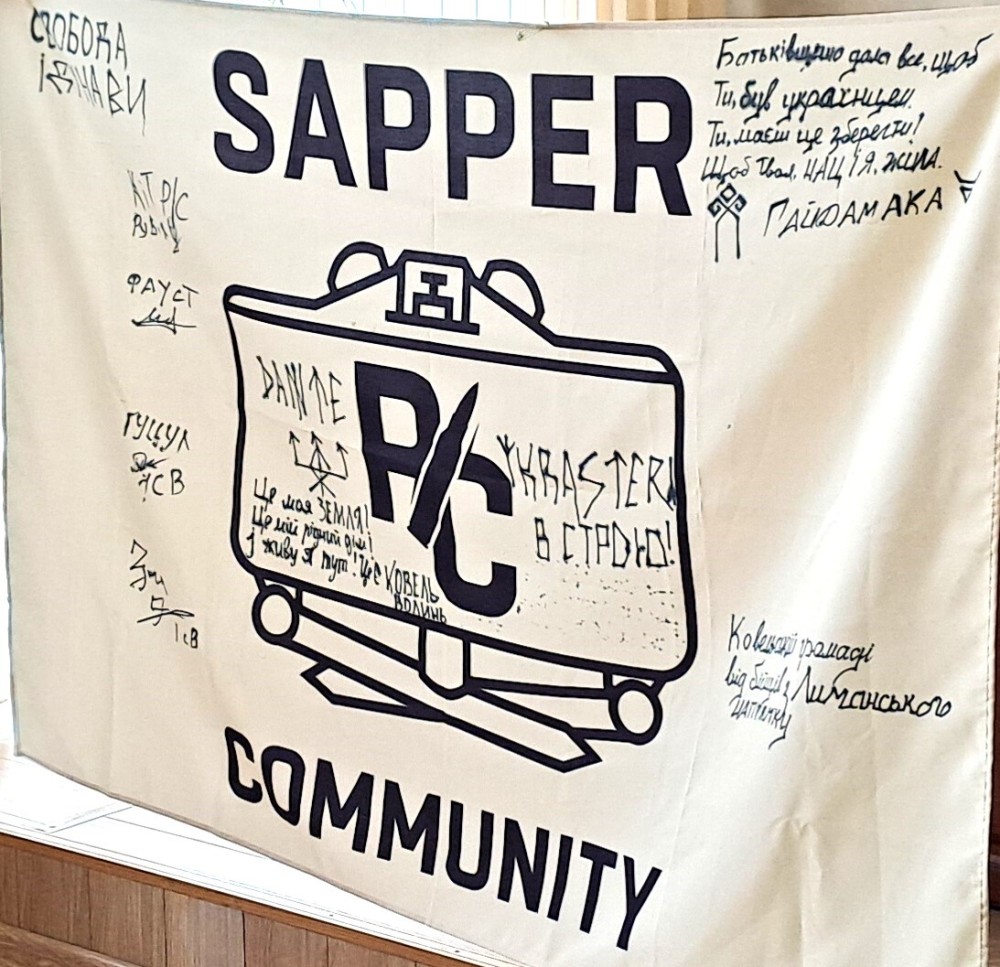 На полотнищі є чимало написів, які зробили військові. Наш легендарний земляк, зокрема, залишив рядки: «Це моя земля! Це мій рідний дім! І живу я тут! Це – Ковель, Волинь».