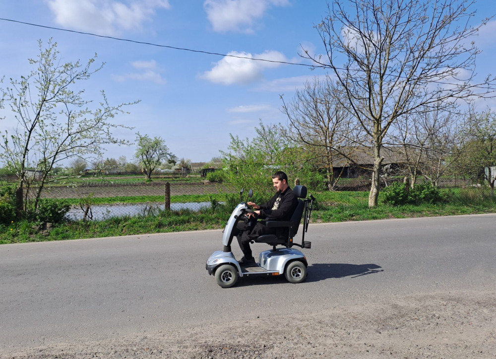 Нині Петро у рідному селі. Сівши за кермо електроскутера, хлопець відразу влаштував тест-драйв транспортному засобу. Каже, що хоча моторолер не дуже швидкий, проте допоможе у пересуванні селом.