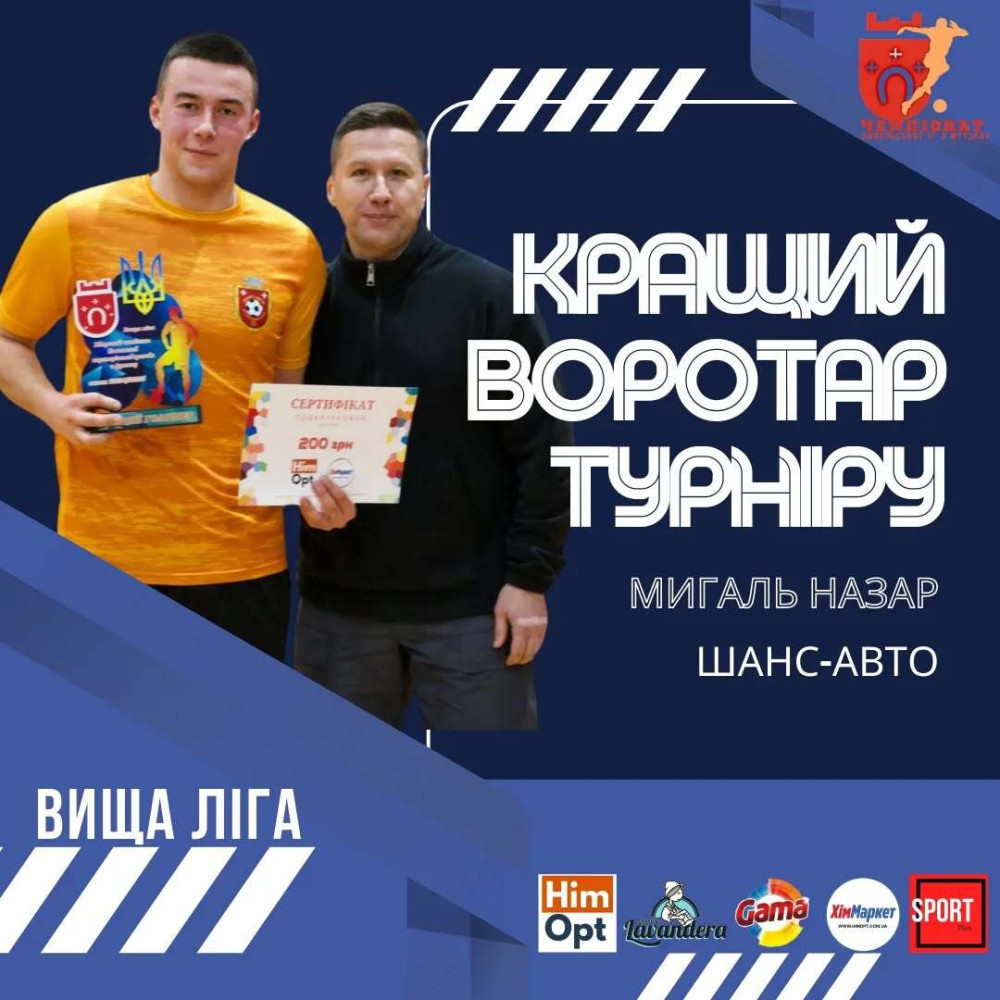 – у вищій лізі: “Кращий воротар” — Назар Мигаль (“Шанс-Авто”), “Кращий бомбардир” — Олексій Федчук (“ВПМУ”);