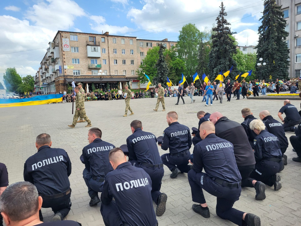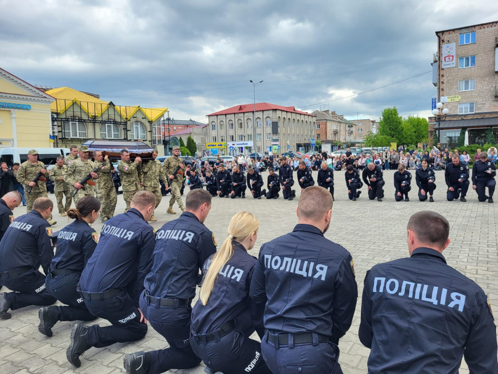Живим коридором його проводжали колеги, вулиці наповнились тривожними звуками сирен автомобілів патрульної поліції, жалобними звуками дзвонів собору. Країна втратила Героя.