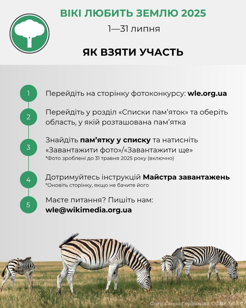 Списки пам’яток та інструкції із завантаження фото доступні на сторінці конкурсу: https://wikilovesearth.org.ua/.