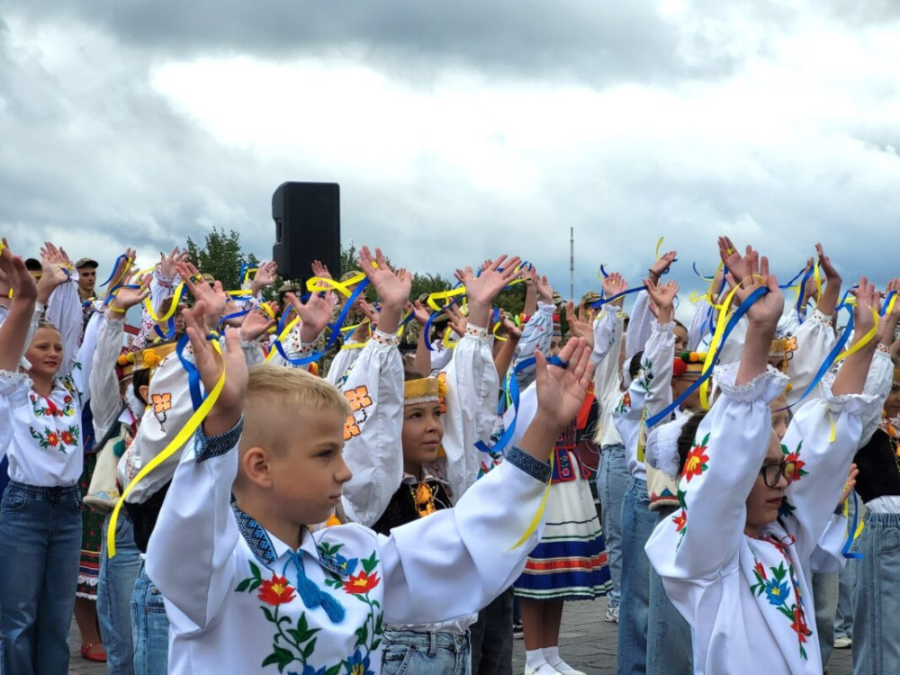 Святкування продовжилося патріотичним флешмобом «Жовто-блакитне серце». До виступу долучилися понад пів сотні юних танцюристів з місцевих хореографічних колективів. Вони подарували глядачам яскраву програму, яка стала символом віри у мирне майбутнє країни.
