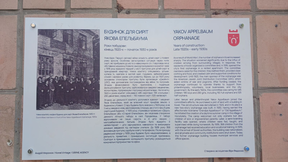 У Ковелі вшанували пам’ять людини, яка свого часу подарувала дітям турботу й надію. На фасаді історичної будівлі, де колись діяв будинок для сиріт, встановили меморіальну дошку Якову Епельбауму — благодійнику, завдяки якому ця установа стала прихистком для сотень дітей.