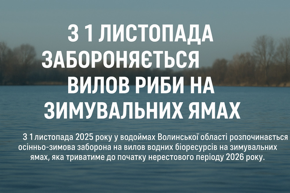 З 1 листопада 2025 року у водоймах Волинської області набуває чинності осінньо-зимова заборона на вилов водних біоресурсів у зимувальних ямах. Обмеження триватиме до початку нерестового періоду 2026 року.