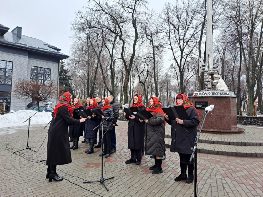 Містяни зібралися біля пам’ятника «Борцям за волю України», де вшанували хвилиною мовчання всіх, чиї життя забрала війна. Після цього представники різних конфесій провели спільну молитву за Україну.