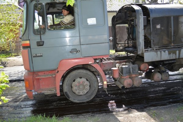 Там їх виконує ПрАТ «ШБУ – 63». Асфальтування ведеться на найбільш аварійних ділянках. На інших частинах вулиці буде використано спеціальну машину для ямкового ремонту струменевим методом.
