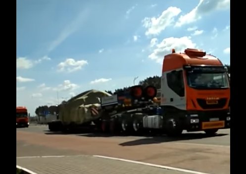 На ньому видно, як у супроводі двох авто поліції та УАЗа на військових номерах в сторону Польщі рухаються тягачі, які везуть 6 танків, які накриті брезентом. За ними везуть військову вантажівку КРаЗ, які, зокрема, використовує Нацгвардія, а також пасажирський автобус.