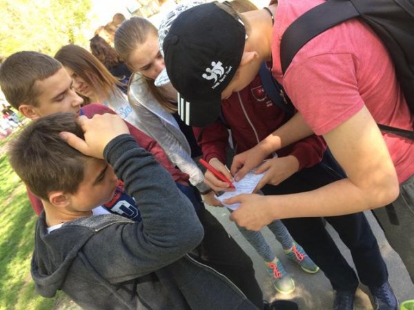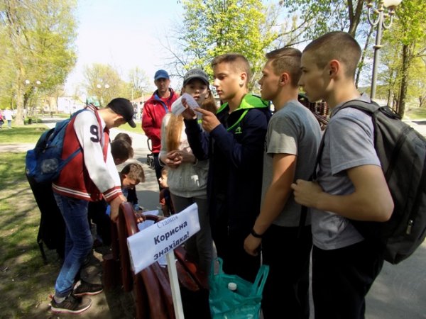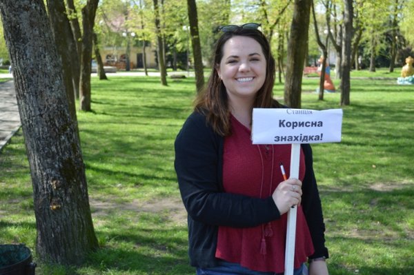 Особливо цікавою для школярів виявилася “Корисна знахідка”, яку координували волонтери Корпусу Миру США в Україні Кесіді Кремтон та Алекс Полк. Потрібно було знайти сувій із запитаннями на тему здорового способу життя у визначених на мапі парку місцях та якнайшвидше дати на них правильні відповіді.