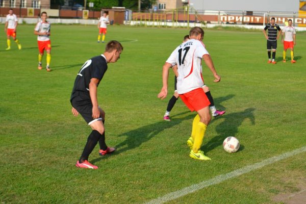 Одразу розпочинають поєдинок дорослі команди, де з перших хвилин м'яч потрапляє до наших воріт. Проте хлопцям вдається відігратися на 24 хвилині та зрівняти рахунок 1:1 (забив Роман Романчук).