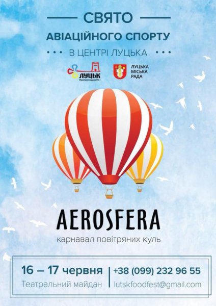 У Луцьку влаштують карнавал повітряних куль AEROSFERA. Справжні професіонали повітроплавства зберуться, аби подарувати неймовірне шоу. Усі охочі зможуть політати на справжній повітряній кулі, насолодитись виглядом аеростатів в луцькому небі, стати свідком барвистих нічних світінь та зробити яскраве селфі.