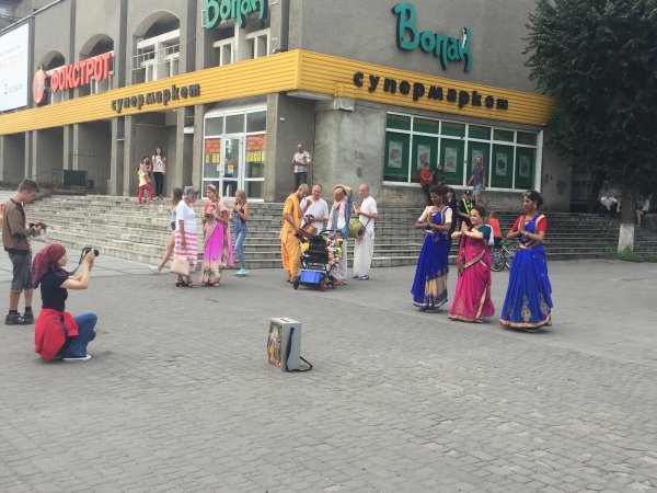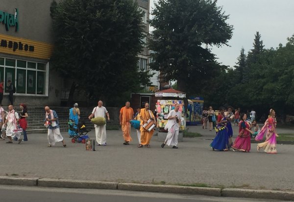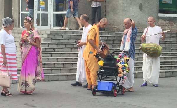 Харизматичні кришнаїти у білих, помаранчевих та інших барвистих вбраннях співали й танцювали, читали мантри, роздавали безкоштовно вегетаріанські смаколики та літературу, за яку просили пожертву.