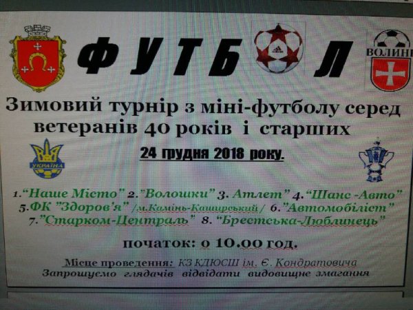 - Ковельська комплексна ДЮСШ запрошує вболівальників 23 грудня - на волейбол, 24 грудня - на футбол
