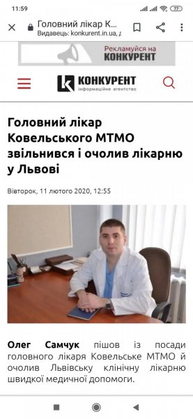 Головний лікар Ковельського МТМО Олег Самчук очолив Львівську клінічну лікарню швидкої медичної допомоги. Про це він повідомив на своїй сторінці у Фейсбук.
