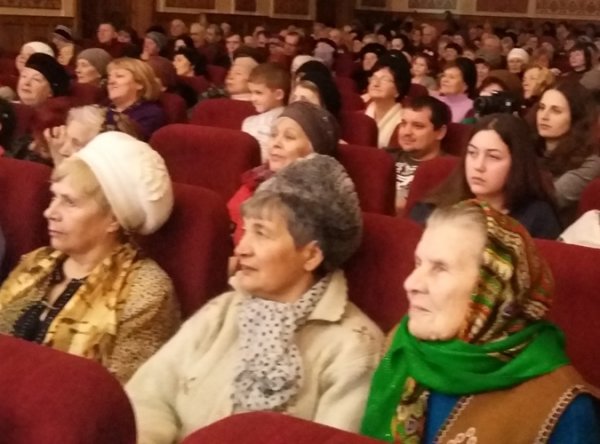 Отець Ростислав, який напевно і не очікував сам такої високої оцінки, дещо знітився і продовжив: « Як відомо, «Театр починається з вішалки». Сьогодні було так приємно, що у «Просвіті» відновив роботу гардероб. Великий стрибок зроблено в оформленні залу. Тепер у нашому місті є можливість інтелігентно, гарно проводити мистецькі заходи. Щоправда, трішки шкода, що місць дещо поменшало. Але ж які стільці! Зрозуміло, що таких зручних, комфортних сидінь можна розмістити менше. Зал прекрасний. Бачу, що старались всі: міська влада, адміністрація закладу, будівельники. Мені дуже сподобалось».