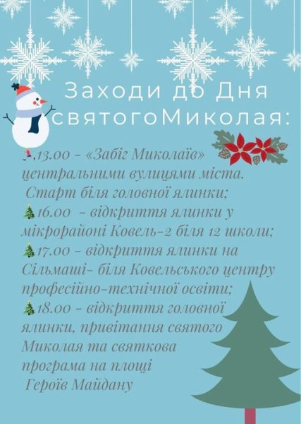 Запрошуємо на заходи до Дня святого Миколая 19 грудня